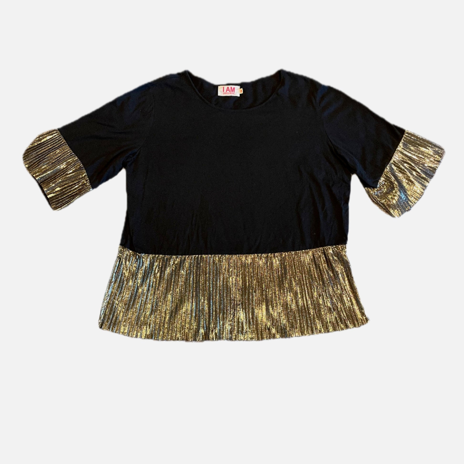 Silver metallic cuffs & hem glamming up this plain black t-shirt.