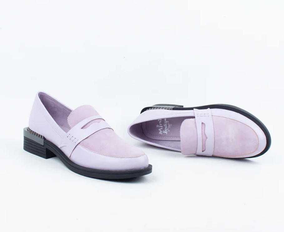Brand new lilac leather/suede Taxi loafer by Minx. Heel height 4cm.